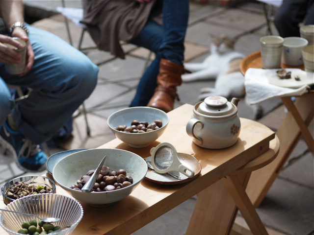 写真左は、その際に庭で供されたオリーブの塩漬けです。右は山栗で、いずれもご自宅の近隣で採取されたそうです。