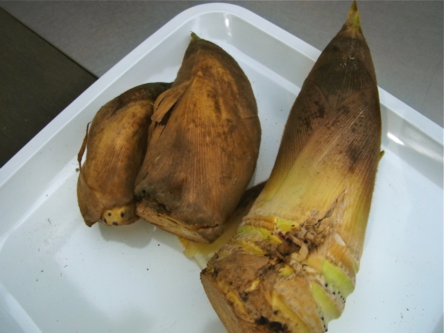 今年、岡山ではタケノコが大不作です。スーパーで買うしかないのかなと思っていた矢先、近所の竹林で採れたタケノコをいただきました。タケノコに残ったキズが、いかにも手掘りです^^