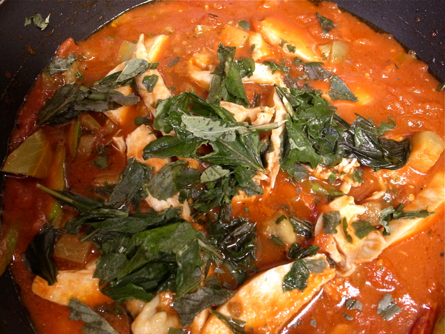 左はソースに投入したところ。常温にさらすとすぐに黒ずむので、素早く投入して煮込んでいきます。まあ何とか、トマトソースの香り付けには使えるようです。冷凍保存してほぼ一年、お世話になりました。