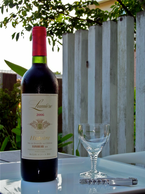 この夕方にいただいたのは、ルミエールワイナリーのイストワール2006の赤です。夏の盛りなのでかなり冷やして飲みました。色にも味にも個性がありますが、過剰ではなく美味しいワインでした。日本ワインと庭で過ごす夏の夕べ、とてもいいものです。