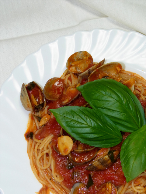 庭のバジリコで我が家定番のアラビアータを作りました。我が家というかワタシ定番という方が正確です。ちょっと贅沢にアサリが入っているので、正確にはアラビアータではないかもしれません^^