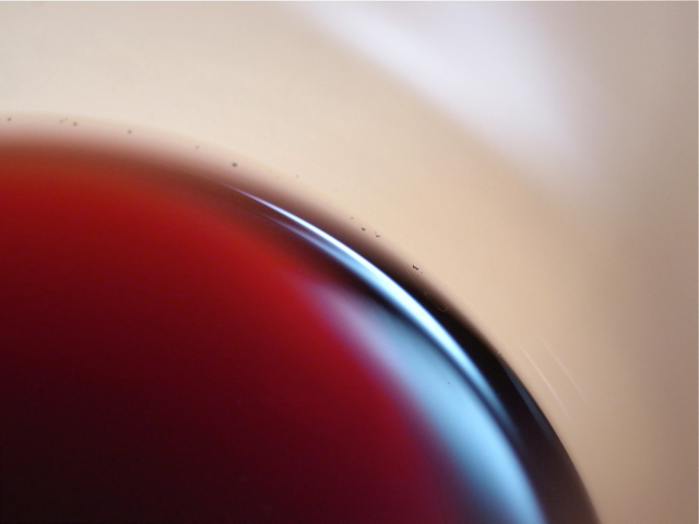 右の写真は、部屋に入って撮ったワインの液体そのものです。赤の深さが何とも魅惑的で、こういう色の飲み物があることが、とても不思議に思えて来ます。