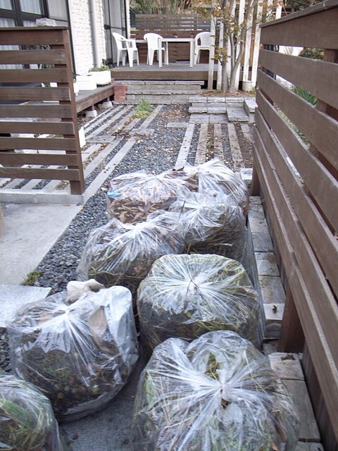 今年も最後の週になってやっと庭の掃除をしました。このコーナの冒頭に掲載した昨年と、ほとんどおなじタイミングですね。ただ、冒頭に掲載してある昨年の写真と見比べると、ゴミ袋が有料になってますね(-_-)。