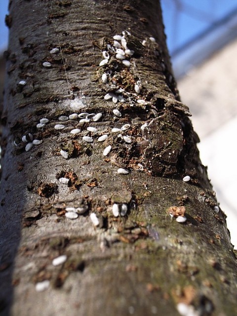 冒頭のテーマ説明のように、冬場にいちどカイガラムシの駆除をしましたが、春の到来とともにまたカイガラムシが勢力を伸ばしてきました。