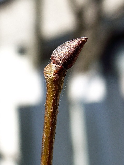真冬の、でも日差しにどこか春の到来を感じさせる上天気の日曜日、久々に庭に出て植物の観察をしました。庭木はどれも一見、枯れ木の風情ですが、よく見ると、そこかしこに無数の固い新芽が姿をあらわしています。そのいくつかを写真に納めてみました。