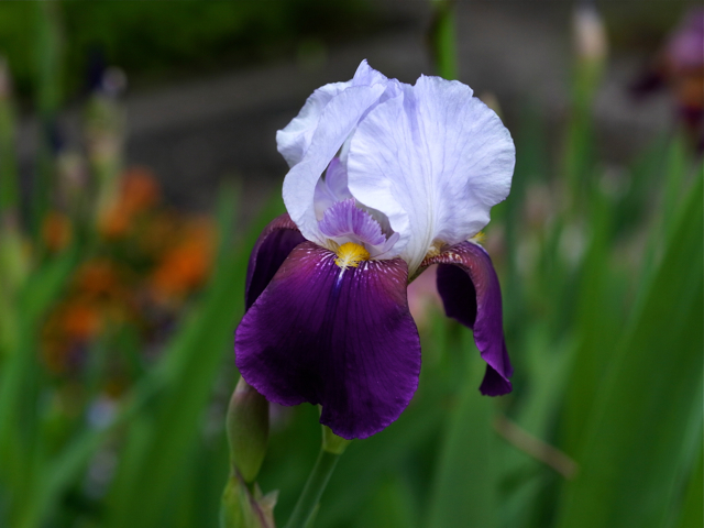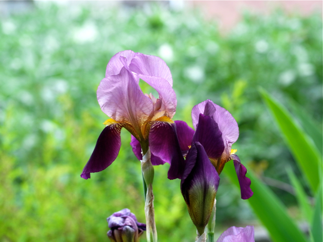 庭のジャーマンアイリスです。他に比べるとやや遅咲きかもしれません。アヤメに比べてとても豪華で、いかにも着飾った西洋婦人という印象です。こういう印象を持つのは、ぼくの年齢のせいかも^^;
