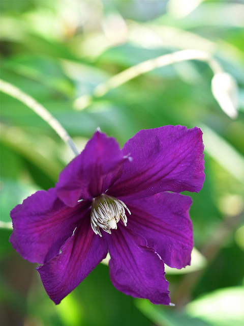 やっと庭のクレマチスが花を付けました。と、思ったら・・・蕾が青虫の餌になっていました。というわけで、花のコーナーに青虫登場です。