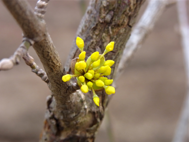 こちらのサンシュユの実につく花も、毎年のイベント。そのたびに思い出すこともいつも同じ。線香花火に保命酒^^;