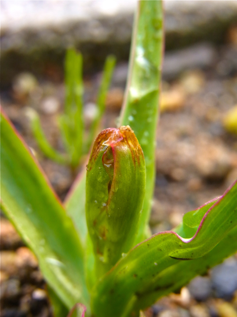 ちょっと見た目には葉のようですが、よくよく見ると胚芽の下は茎につながっていて、とても小さな蕾だとわかります。はやく花が着くといいな。