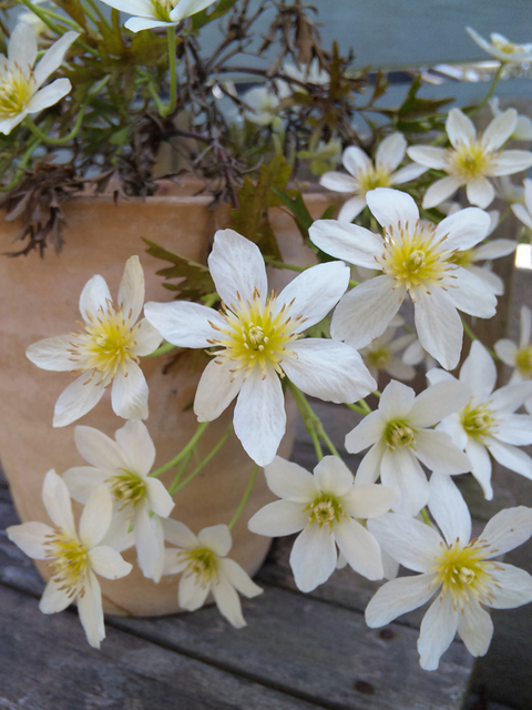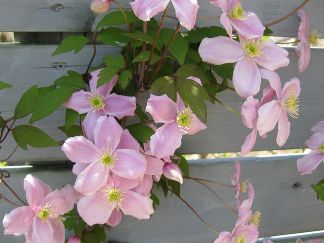 庭のクレマチス モンタナ・ルーベンスが無事冬を越して満開になりました。