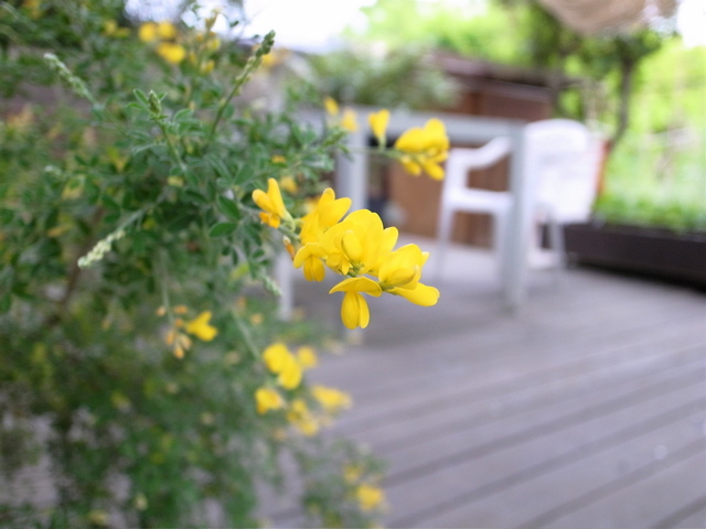 鉢植えのエニシダ、花が付くのが遅いのが気になり、鉢に縦穴を開けてそのなかに有機肥料を入れました。それからしばらくして蕾ができ、5月の半ばになってやっと満開の花を見ることが出来ました。
