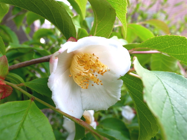 夏椿(シャラ)が今年で三回目の花を付けました。