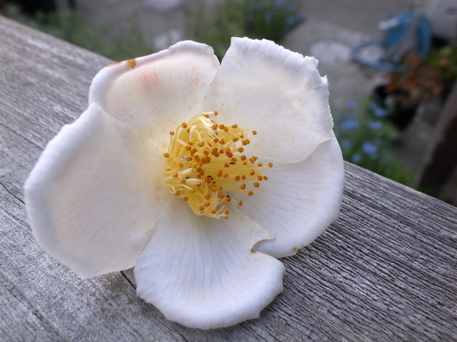 花びらが散るよりも先に花ごと落下して、地面に花を咲かせます。花ごと落ちることで、ヘリコプターやパラシュートと同じ原理で、落ちた花はたいてい上に向いて、いかにも生きて咲いているようです。流体力学を駆使するあたり、この花の美しさへの執念かもしれません(笑)。