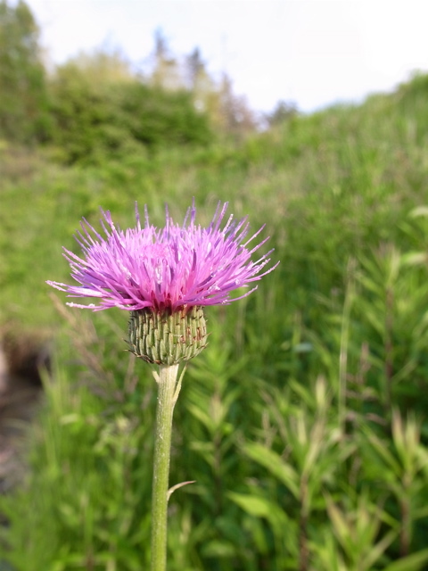 散歩道にある溜め池の土手で、今年もノアザミを見つけました。