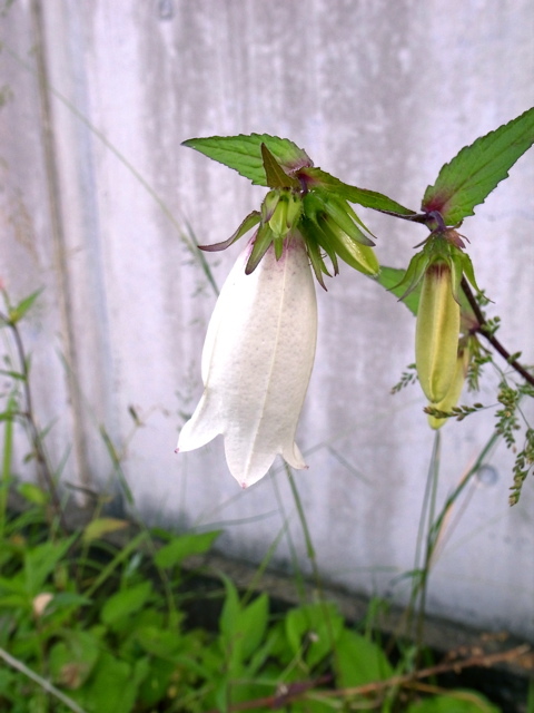 町内の道ばたにホタルブクロが咲いていました。ほっこりと大きく柔らかそうな花です。大正時代にでもありそうな、灯りのための火屋を思わせます。蝋燭や油の炎ではなく、蛍の光であるところが粋だなあ^^