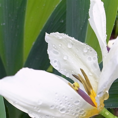 ちょっとフリージアに似てますよね。それを頼りに検索してたどりついたのが「バビアナ」。でも、バビアナの解説には「葉に毛がある」という記述も。写真のものはツルリとした剣状で、とくに毛はありません。となると、違うかな〜。