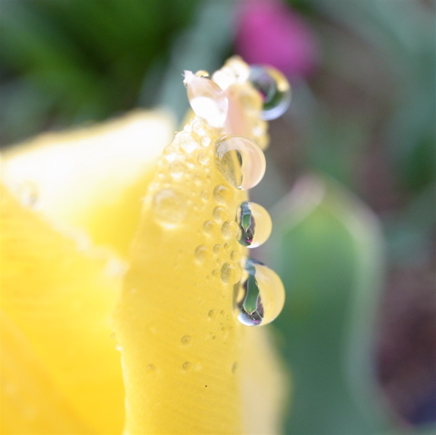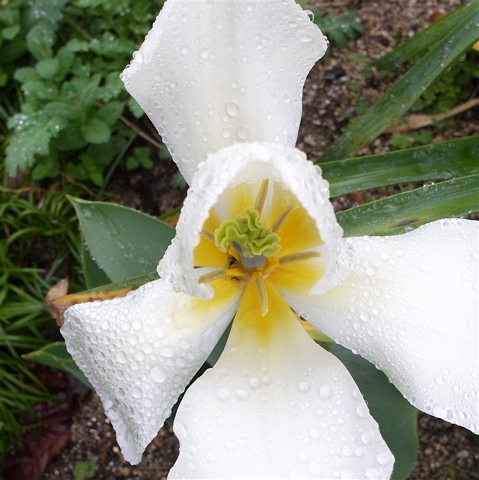 雨上がりの庭は、まるで水と植物の玉手箱です。今朝ほど庭で見かけた花の様子をご紹介します。左上がニゲラ、あとはいずれも散りはじめたチューリップです。