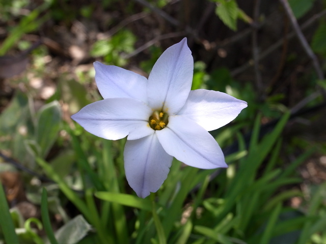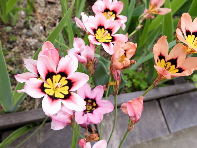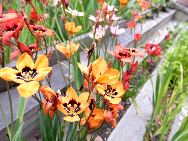 冬頃コンクリート格子に植えた球根から、アネモネの後で花を付けました。ちょっと大人っぽい印象の花で「いいな〜」と思いつつ、名前がわからず掲載できませんでした。