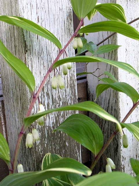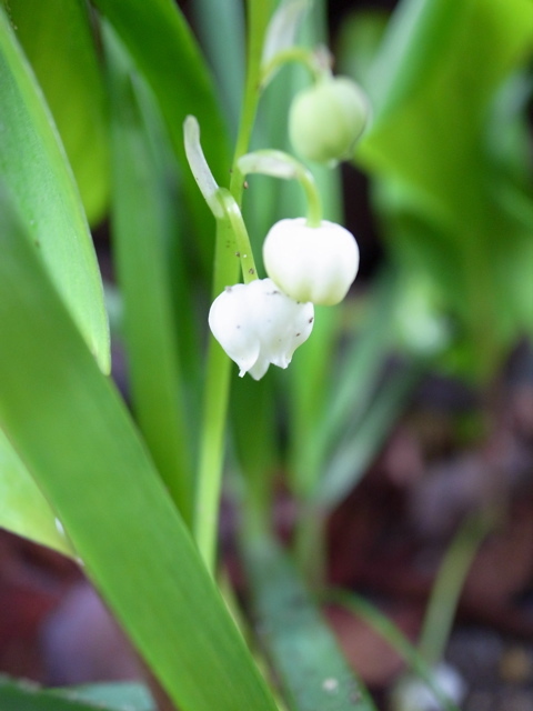 庭のデッキの下に、今年もスズランが咲きました。春先とは思えない一昨日の激しい雨のせいで、飛び散った土が葉に残っています。