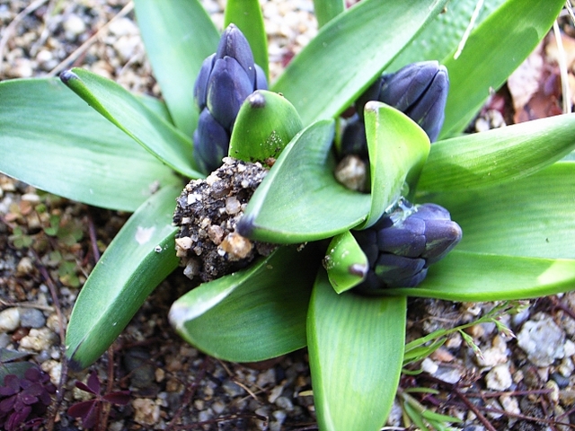 飛信子という字から女性をイメージしますが、ヒヤシンス本来の意味によれば同性愛者の美少年だそうです。土を押し上げている様子からは想像できませんが、飛信子の本当の姿が垣間見えるのは、花が満開のとき?