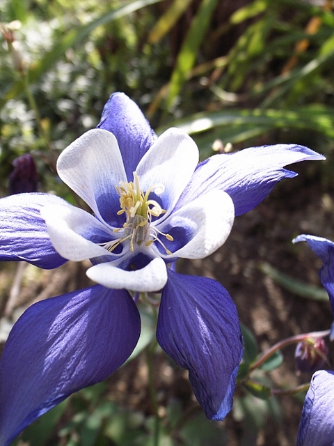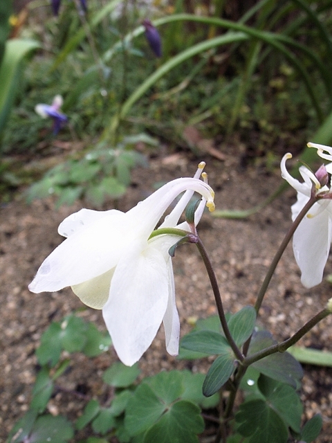 休日に庭に出ると、突然、オダマキが花を付けていました。妻が苗から植えたものです。