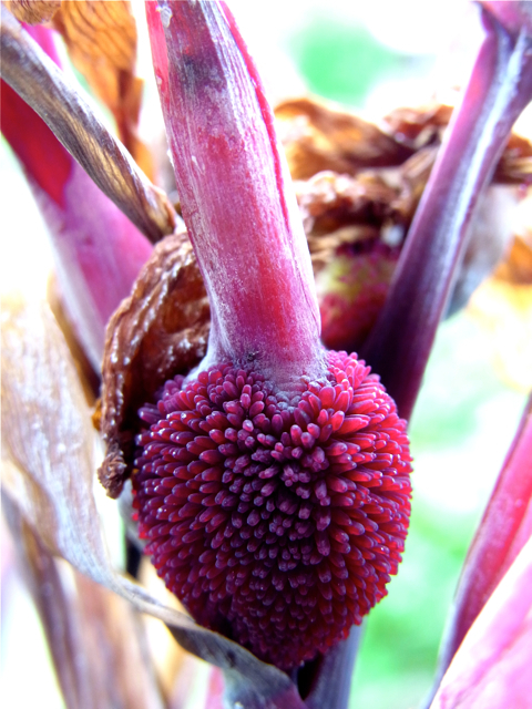 カンナの花が散ったあとにできる実のようなもの。まるで野苺のようだけど・・・気になってちょっと齧ってみたけど、ジャリジャリするだけで特段の味もなし^^;