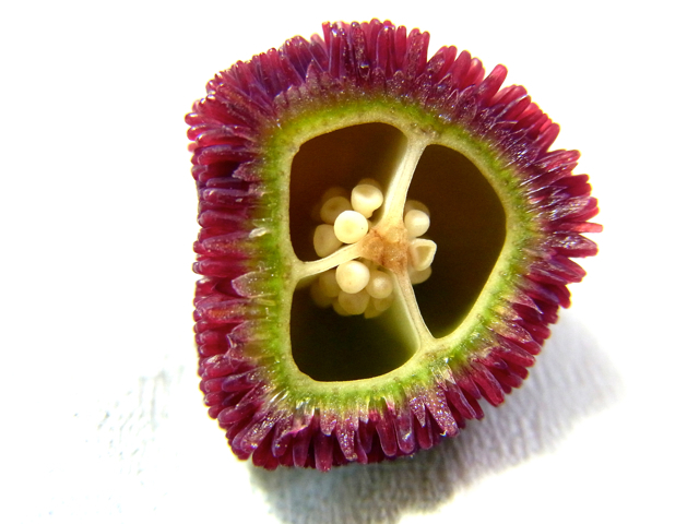 カンナの語源は「インディアンの弾丸」だとか。それほど固い種がこの中にできる??? 気になり、輪切りにしてみました。確かに種らしい粒があるけれど、う〜ん、これが弾丸になるんだろうか。カンナの回りで種を拾ったことないしなあ。