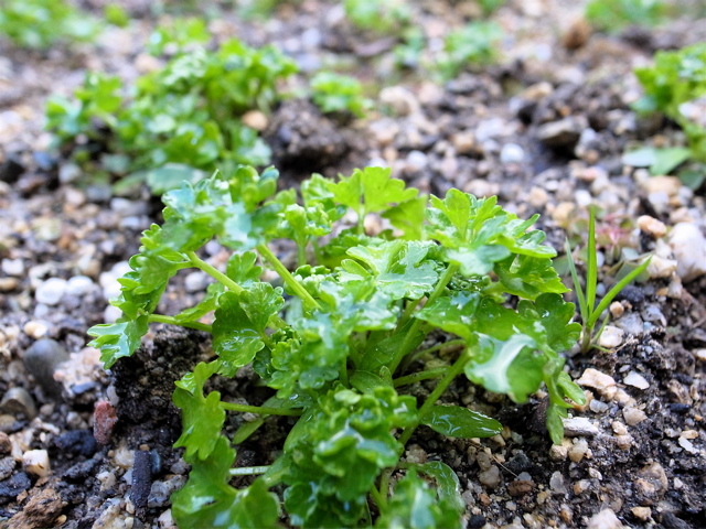 種蒔きをした当初、妻に「そんなにパセリ作ってどうするの〜」と言われた迷いがこれで払拭(笑)。成長はゆっくりですが着実に増殖中のパセリ、がぜん楽しみになってきました。