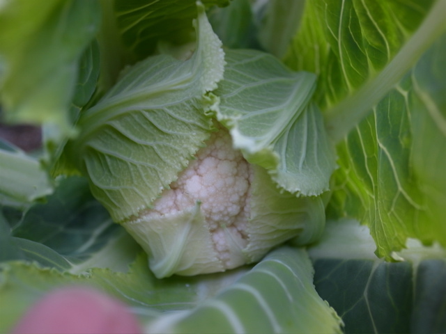 少しずつ、徐々に、だんだんと、ぼちぼち・・・ゆっくりを表すあらゆる表現を駆使しながら、カリフラワー三兄弟が姿を現しました(^^)/。長男はただいま9センチ。成人式まで後何日???