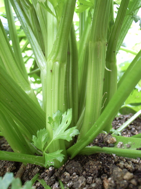 目覚ましいのはセロリですね。スーパーで見るいちばん小さい部類のものくらいには育っています。もっとも、店でこれを見たら「ミニセロリか?」と悪口いいそう(笑)。