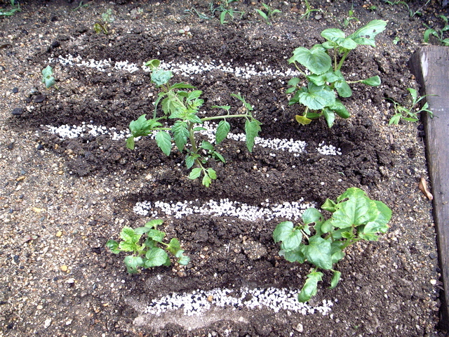 でも、なんとか生き永らえているオクラに、成長への願いを込めて、はじめての追肥をしました。夏に向かって生き延びるか、梅雨とともに勢力を増しそうな庭の虫たちとの戦いに敗れるか。ガンバレ、オクラ!!