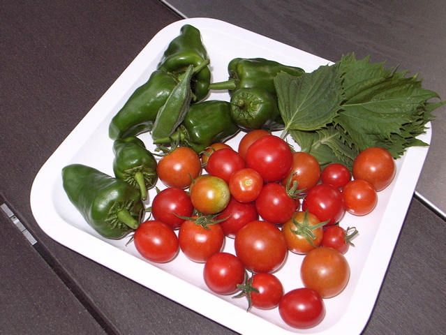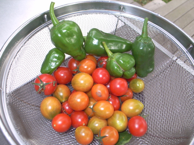 プランターのピーマン、成長が遅く、なかなか花も付かず気をもみましたが、ピークのない盛夏をすぎてからやっと元気をとりもどしてきました。本日の収穫は7個。でも、これが最後かもしれません。