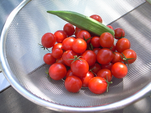 夏がどこかに行っちゃった今年、野菜を摘み取るたびに、これが最後の収穫という思いにかられます。本日の収穫も同じ。夕暮れが迫るいましがた、DIY-PLANTERからピーマンとミニトマト、一坪菜園からオクラ、ミニトマト、シソを収穫しました。