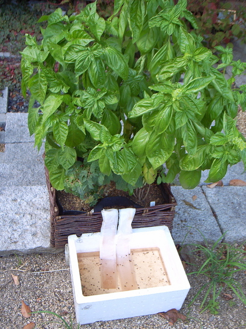 そこで、庭トロの経験を活かして、揚水ヒモとトロ箱を利用した補助的な給水手段を考えてみました。