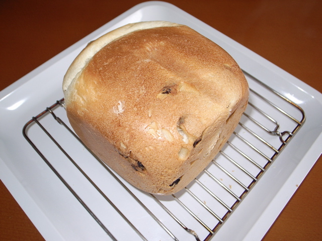 写真のパンは、パン焼き機から出たばかりのレーズンパンです。プランターの野菜、手作りのパン、そして豆乳というのが、このところ休日の定番です。