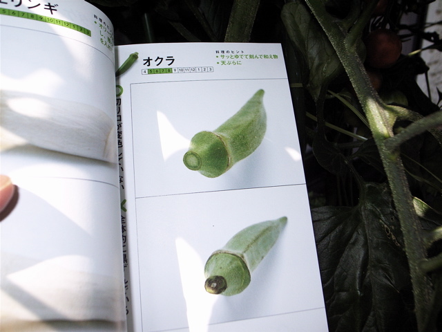 さっそく、庭で採れた野菜にこの本の評価を当てはめてみました。ひとつは、今朝収穫したばかりのオクラ。もうひとつは、先日収穫を終えたジャガイモです。本の記述は以下のとおり。