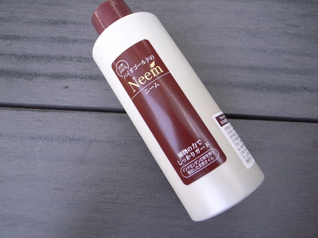 こんなことが、どうやらニームオイルに期待できるようなのです。その期待を込めて、「バイオゴールドのニームオイル」を購入しました。ニーム関連の詳細は、こちらのホームページをごらんいただくとして、さっそくこれを小型の加圧式スプレー容器と合わせて使用することにしました。