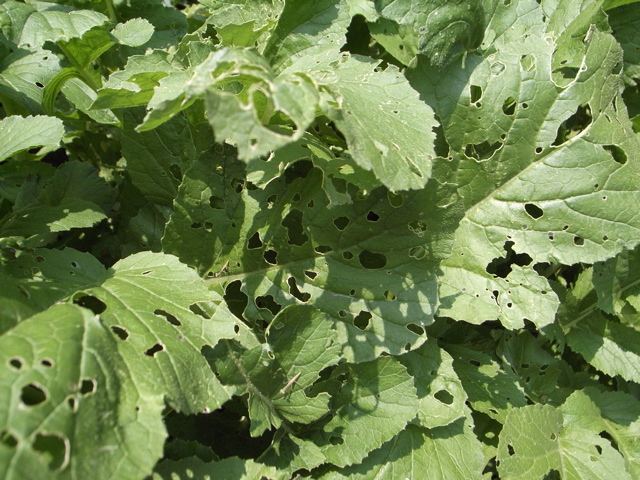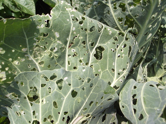 野菜の虫食いが日増しに深刻になっています。いちばん被害が激しいのがキャベツ、それからダイコン。ジャガイモの一部にも虫食いが進行しています。オクラも虫が大好きなので、成長とともに虫食いが多発する可能性があります。