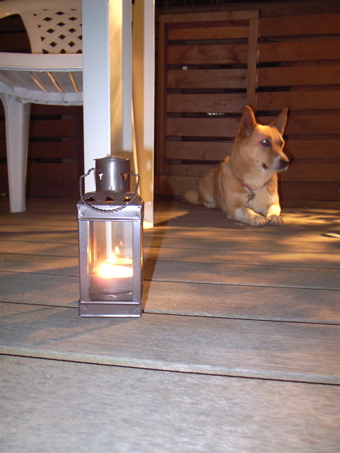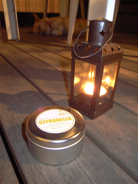 ただのデジカメながら撮影にけっこう時間がかかり、愛犬モモも疲れ顔(^^)。でも、その間、蚊に一度も刺されませんでした。シトロネラキャンドルって、けっこう効くのかなと実感しました。