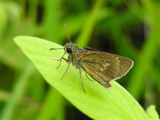 昨年の8月に、まるで緑の波間を駆けるサーフィン中のチャバネセセリの姿を掲載しましたが、今年のは、まるで木の葉のサーフボードに乗っているようです。