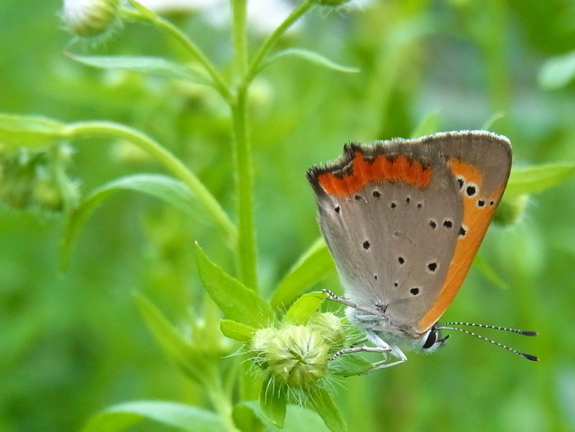 こちらもカメラ違いで捕らえたベニシジミです。あらためて昨年の写真を見ると、同じ個体かとおもうほどそっくりですねえ。