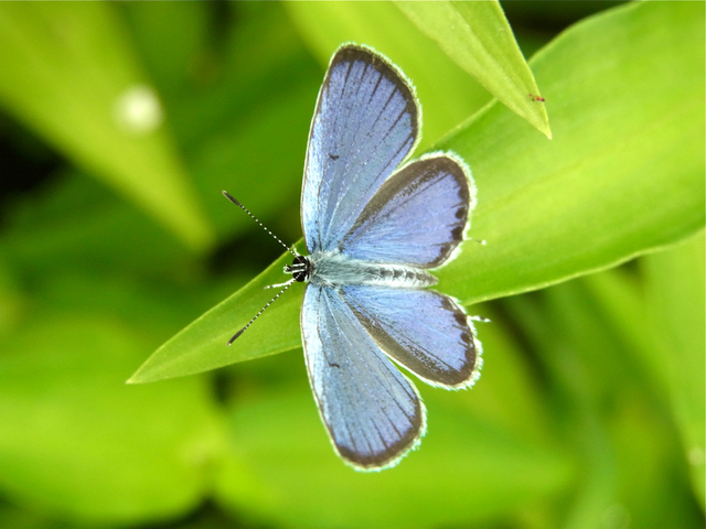 今度はツバメシジミの雄です。後翅にある尾のような突起が名前の「ツバメ」の言われだそうです。青紫の羽がとても奇麗です。