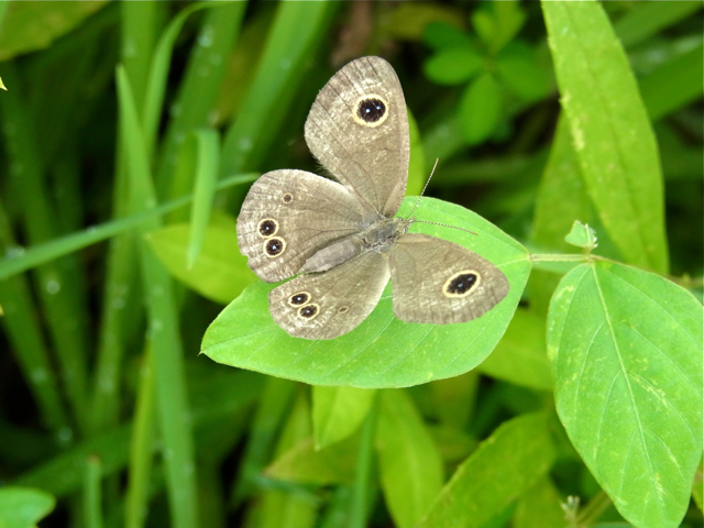 後翅の紋が三つあるので、たぶん、ウラナミジャノメです。ヒメウラナミジャノメは後翅の紋が5〜8つあるそうです。