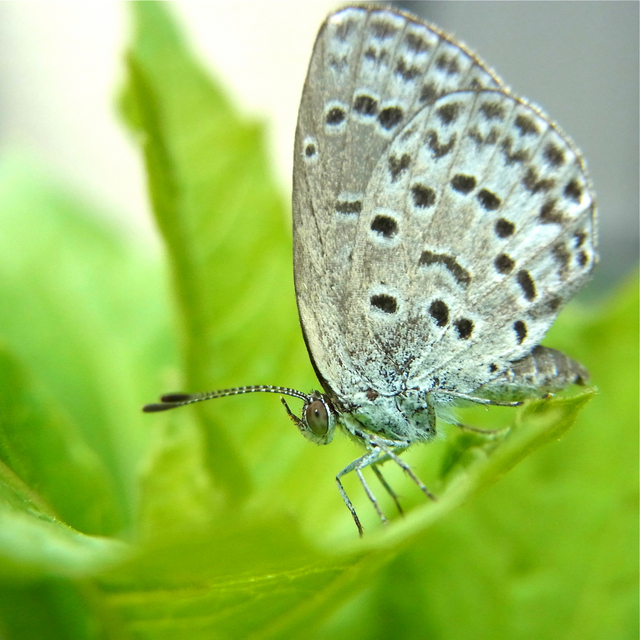 毎度おなじみのシジミチョウです。この季節になると、ほんとうにそこら中の草むらで必ず見かけます。もちろん、我が家の庭も例外ではありません。なんといっても、食料のカタバミはどこにいっても生えている草ですからね。