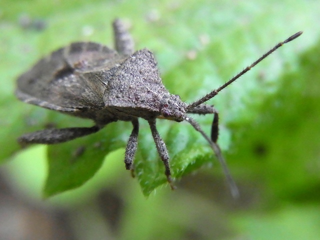 しかし、剛毛のような短い毛で覆われているようすは、ツマキヘリカメムシの特徴でもあるし・・・う〜ん、間違いかもしれません。