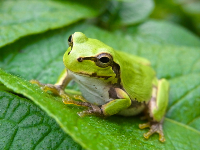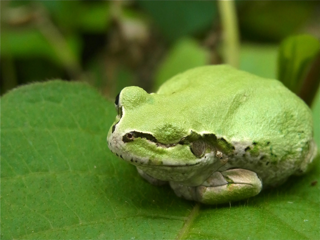 ちなみに、写真の左と右の雨蛙、右側は片目のように見えるのはぼくだけでしょうか。外傷がないように見えるので、もともと片目で生まれたのかな。もしやウインクかしらと突いてはみたけれど、やはり片目は閉じたまま。体つきを見る限り、不自由なく餌の捕獲はできているようです。