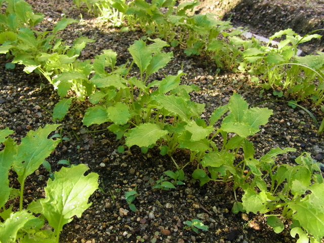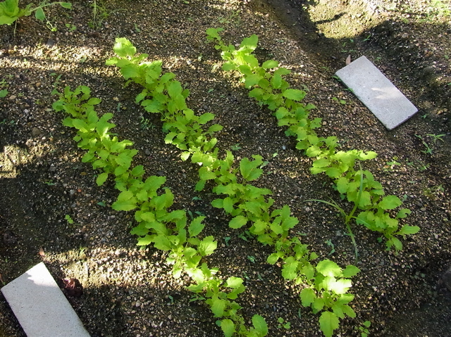 そんななか、この秋に撒いた種の発芽一番乗りはカブ。もうすっかり双葉を過ぎているので、今日にでも最初の間引きをする予定です。