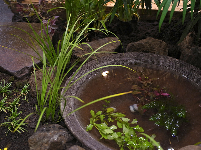 水鉢のなかには、ホンモノのメダカが泳いでおり、子どもらに好評でした。来場者の様子を見ていると、大人よりも子どもの方がメダカを見つける確率がずっと高いですね。目線が低いから? それとも、興味の持ち方が異なるせいでしょうか^^